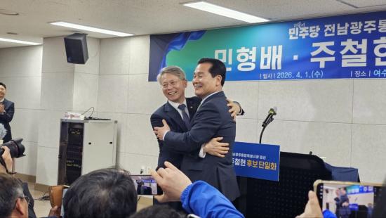 À̾î ÁÖöÇö È帴 ¡°Á¦°¡ ǰ¾î¿Â Àü³²¡¤±¤ÁÖ ´ëµµ¾àÀÇ ²ÞÀ» ¹ÎÇü¹è Èĺ¸ÀÇ ¾î±ú¿¡ ¾ñÀ¸¸ç Èĺ¸Á÷À» ³»·Á³õ´Â´Ù¡±°í ¹àÈ÷°í, ¡°Àú¸¦ ÇâÇß´ø ¿¸ÁÀ» ¸ðµÎ ¸ð¾Æ ¹ÎÇü¹è Èĺ¸ ½Â¸®ÀÇ ¹Ð¾ËÀÌ µÇ°Ú´Ù¡±°í °Á¶Çß´Ù.